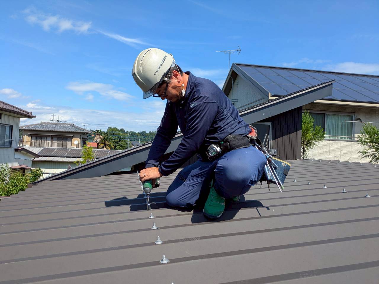 今の屋根材の上に新たな屋根材をかぶせる工事です。